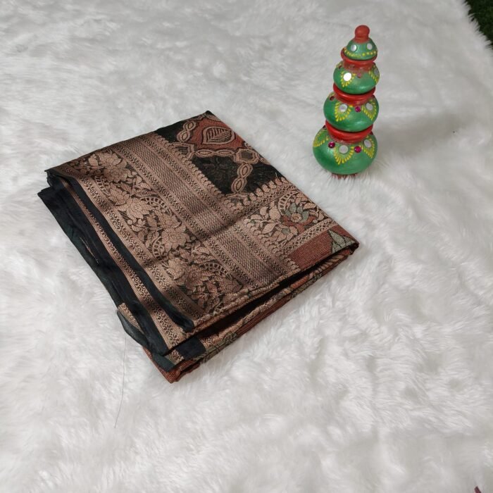 The delicate floral motifs, woven with precision, add a touch of regal charm, making it a perfect choice for weddings, festive occasions, and grand celebrations. Its lustrous texture, lightweight drape, and intricate craftsmanship make it a must-have in every ethnic wardrobe.