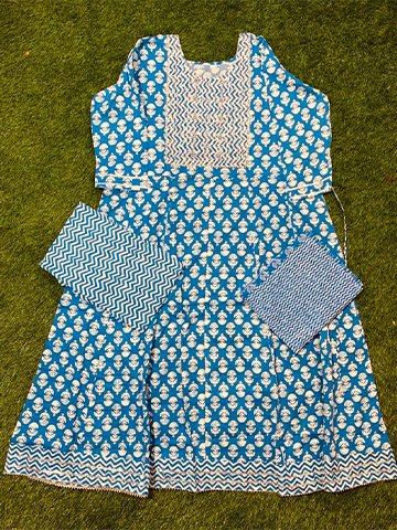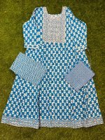 Dupatta: Accompanied by a soft cotton dupatta that complements the Anarkali set perfectly.