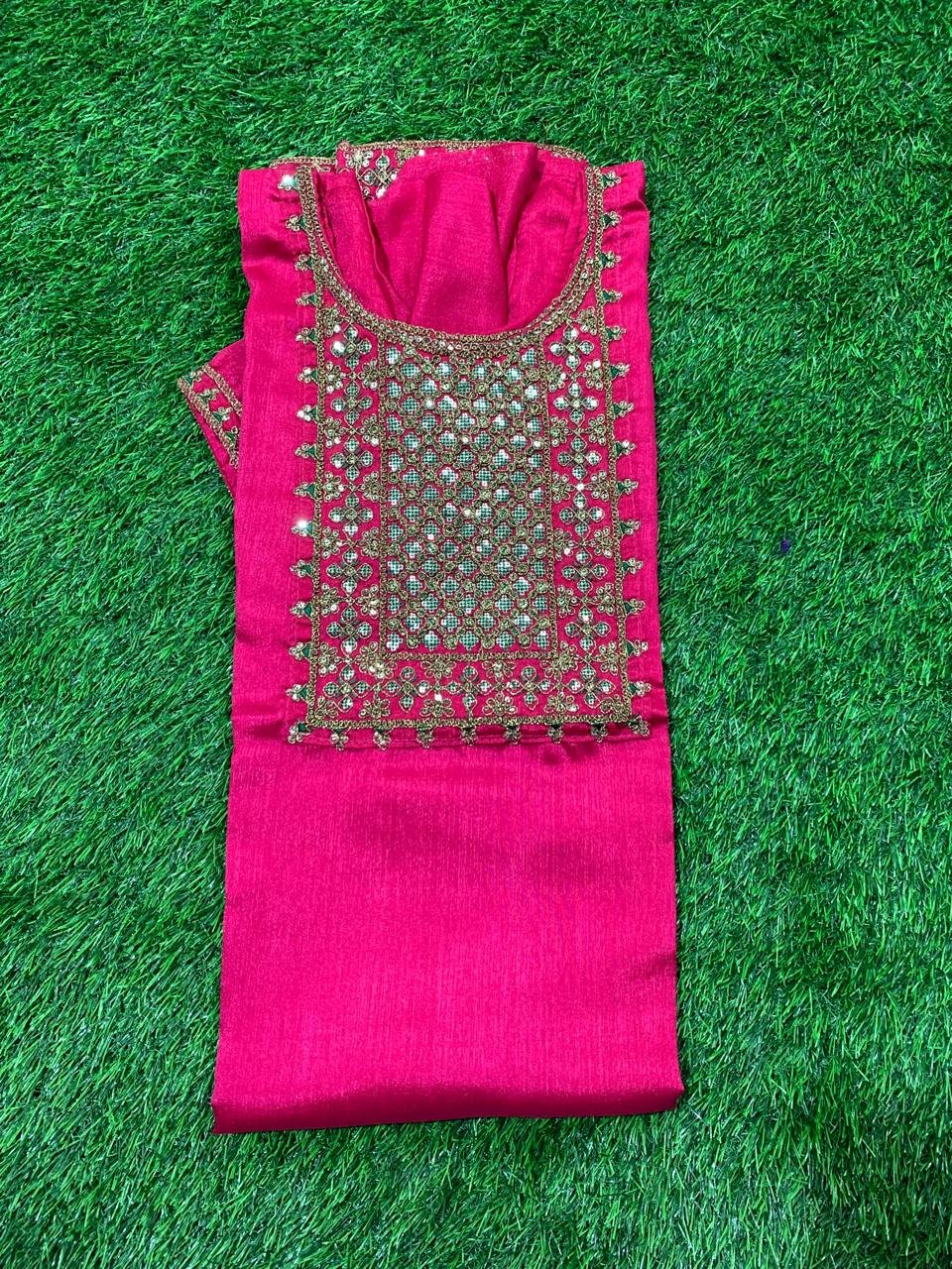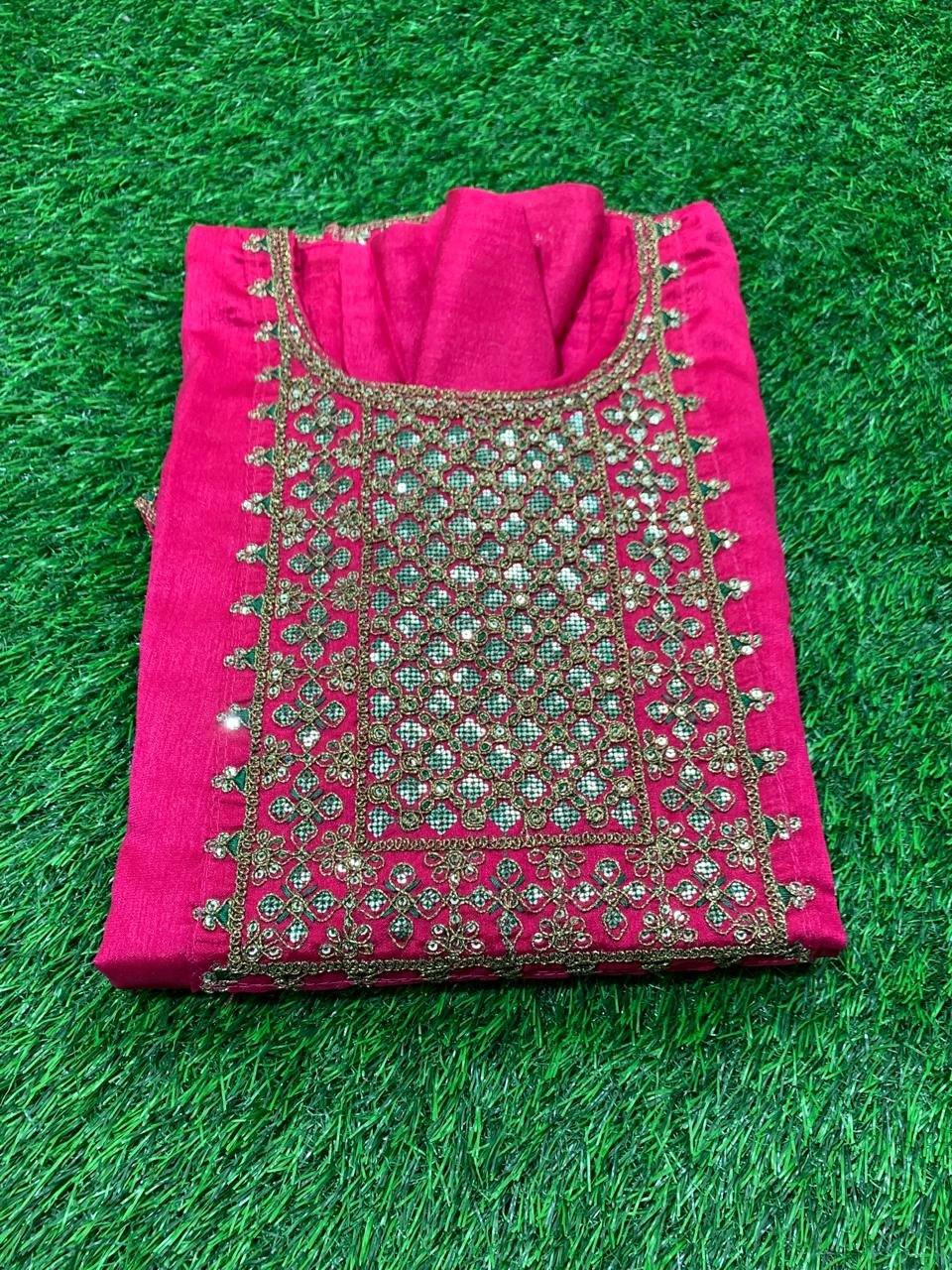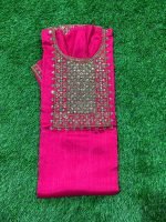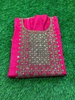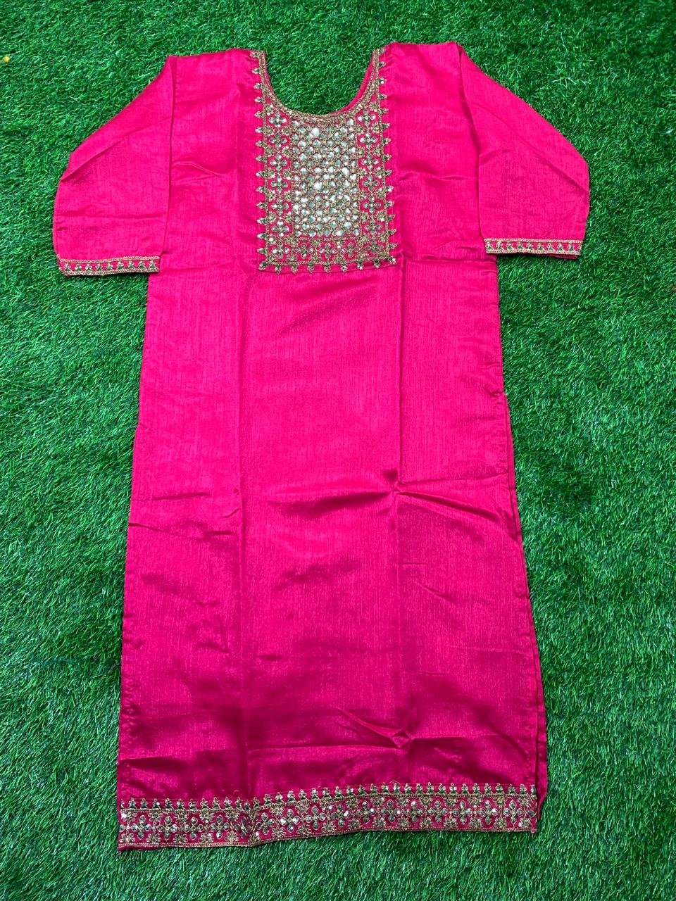 Type: VICITHRA Hot Pink Heavy Sequence Work Cotton Silk Kurti with Embroidery Neck Design