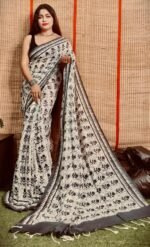 Experience the charm of handcrafted elegance with this stunning Mulmul Cotton Batik Print Saree – a perfect blend of tradition and modernity!